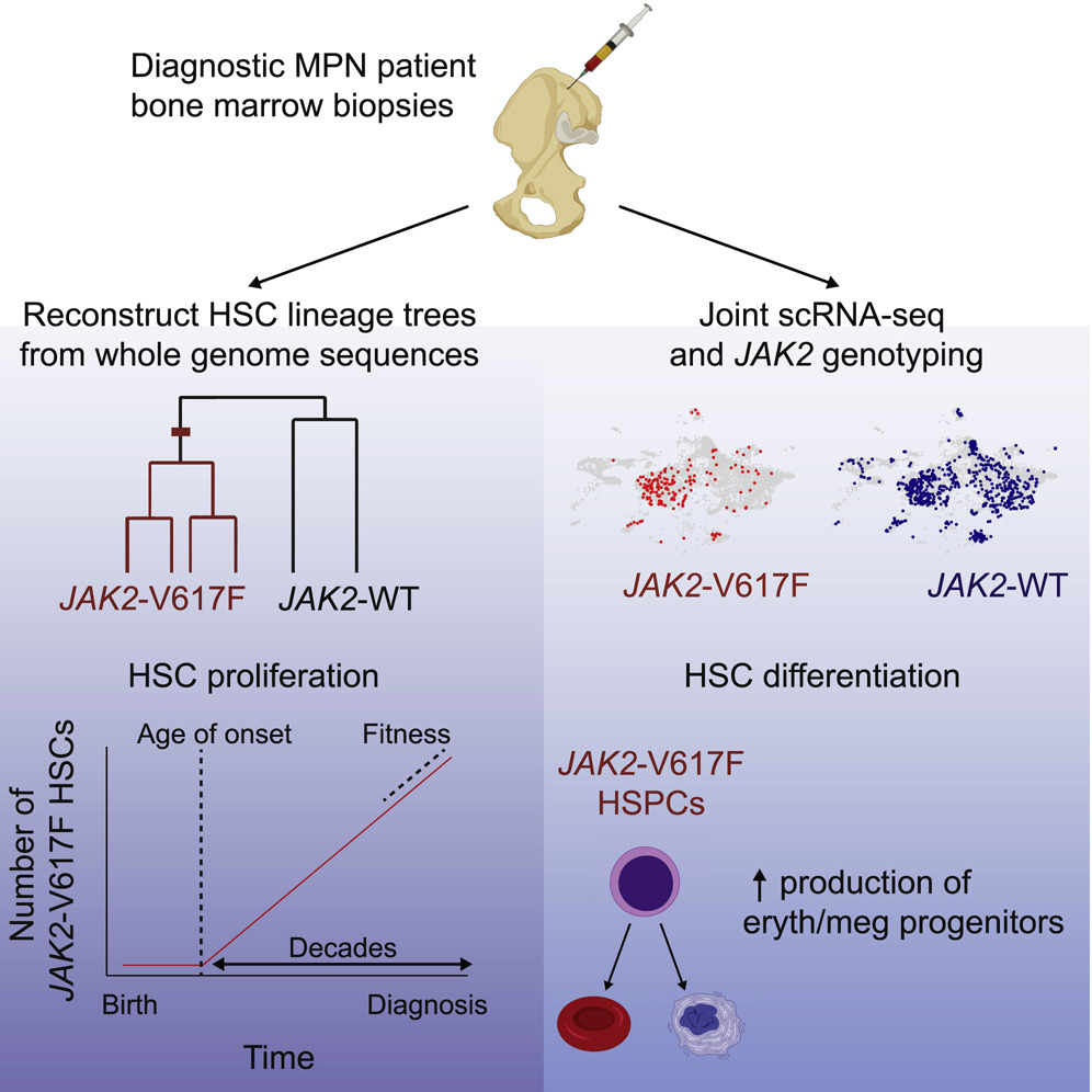 and reconstructed lineage histories of individual HSCs using somatic mutation patterns. We found that JAK2-V617F
